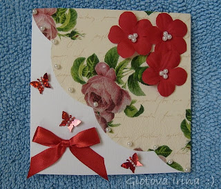 Использовала такие же половинки бусин, как и в предыдущей открытке... Решила растратить свои новые материалы по полной :)